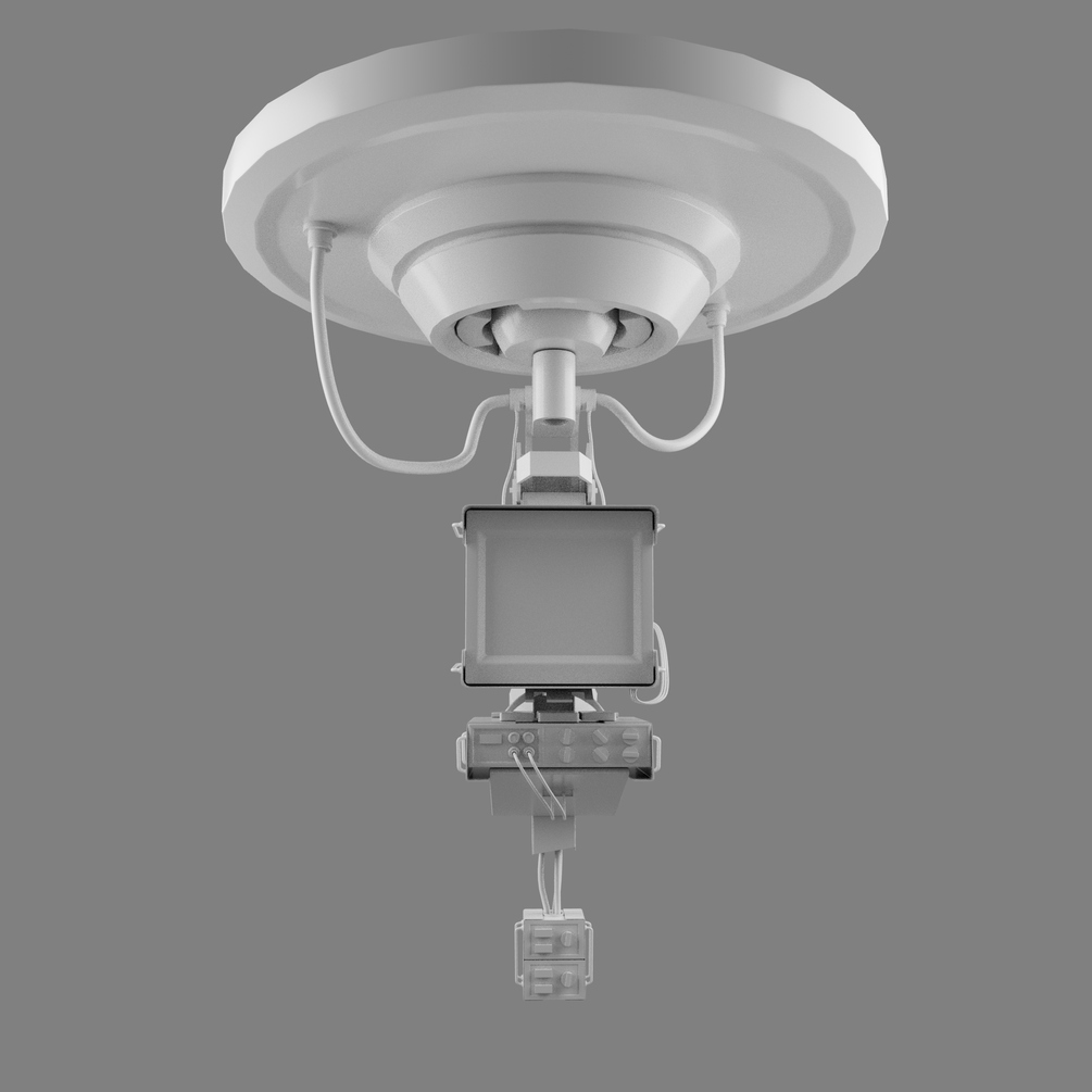 Free sci-fi ceiling scanner mesh. Clean topology, hard-surface design. Includes FBX, OBJ, and Maya file. Great for texturing and environment practice.